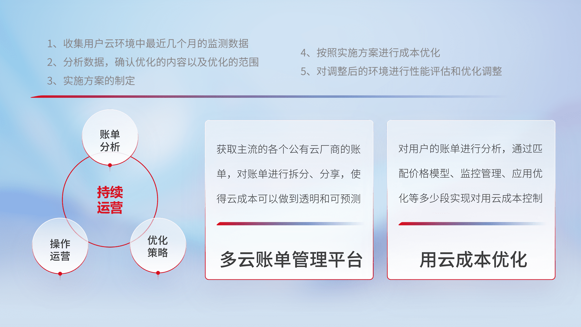 监控业务系统资源开销,,对资源的消耗精确计量,,,,实现费用的透明化管理,,,不断提升资源使用率,,调整资源购买方式,,,降低资源费用成本,,,,用云成本可预测、、用云费用可优化,,云资源配额有据可依。。